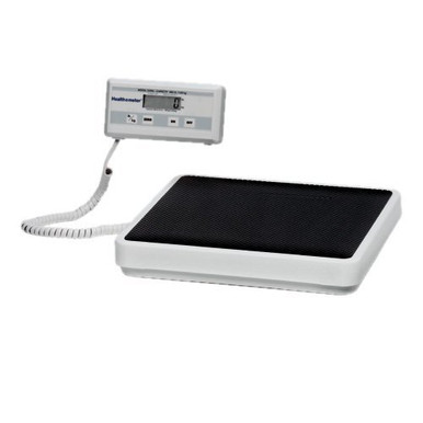 Two-piece digital scale with remote LCD display. Non-slip mat on 12″ x 12″ heavy duty steel platform. Nine foot cord allows easy, safe positioning of the display on the wall or on a table (enclosed table-top bracket). LCD displays weight in lb & oz or kg. Features zero setting. Operates on one 9v battery (included) and 120v AC adapter.