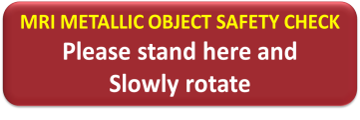 MRI “Final Safety Screen” for metallic objects”. Brings attention and shows exactly where to stand next to screening unit.