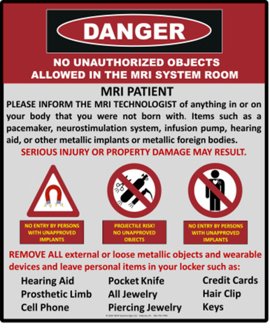 The MRI Warning Danger Check-In 12″ x 10″ sign is the first notice that…