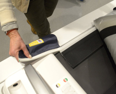 Scan Track External Channel System provides a C-channel that attaches under the imaging tables cradle by Hook and Loop. Allowing Scan-Bands® to be easily adjusted, even after the patient has been placed on the table. This patented external channel increases a machines positioning capabilities, providing uninterrupted travel of the Scan-Bands ® down the length of the table.
