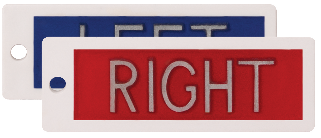 Our deluxe, lightweight plastic markers offer increased durability and an exceptional look for a bargain price! Available in multiple color options, these 1/2″ (0.5″) right & left markers are available with a no characters. Sold as a set of vertical right & left markers.