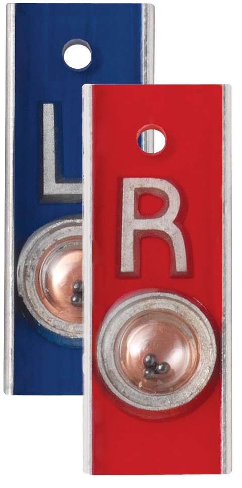 Techno-Aide’s aluminum markers offer a durable, premium polished look! Our unique encapsulated beads act as a position indicator for quickly identifying image orientation. Available in multiple color options, these 5/8″ (0.625″) right & left markers feature position indicators and do not have any characters. Sold as a set of vertical right & left position indicator markers.