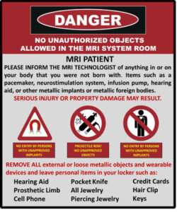 MRI Danger No Metallic Items 20” x 16.5” wide custom cut shape…
